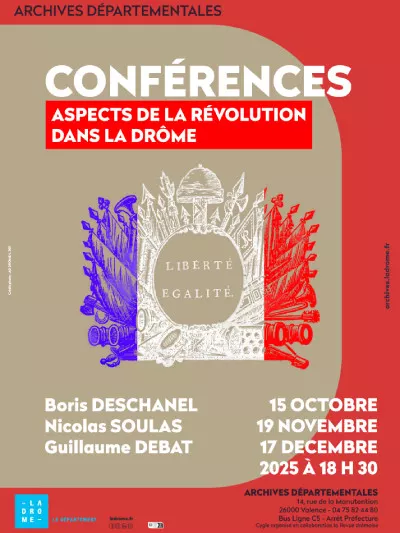 Le Département de la Drôme vous invite à un cycle de conférences autour de la Révolution française. Trois rendez-vous pour explorer ses aspects économiques, politiques et sociaux à travers le prisme du territoire drômois.