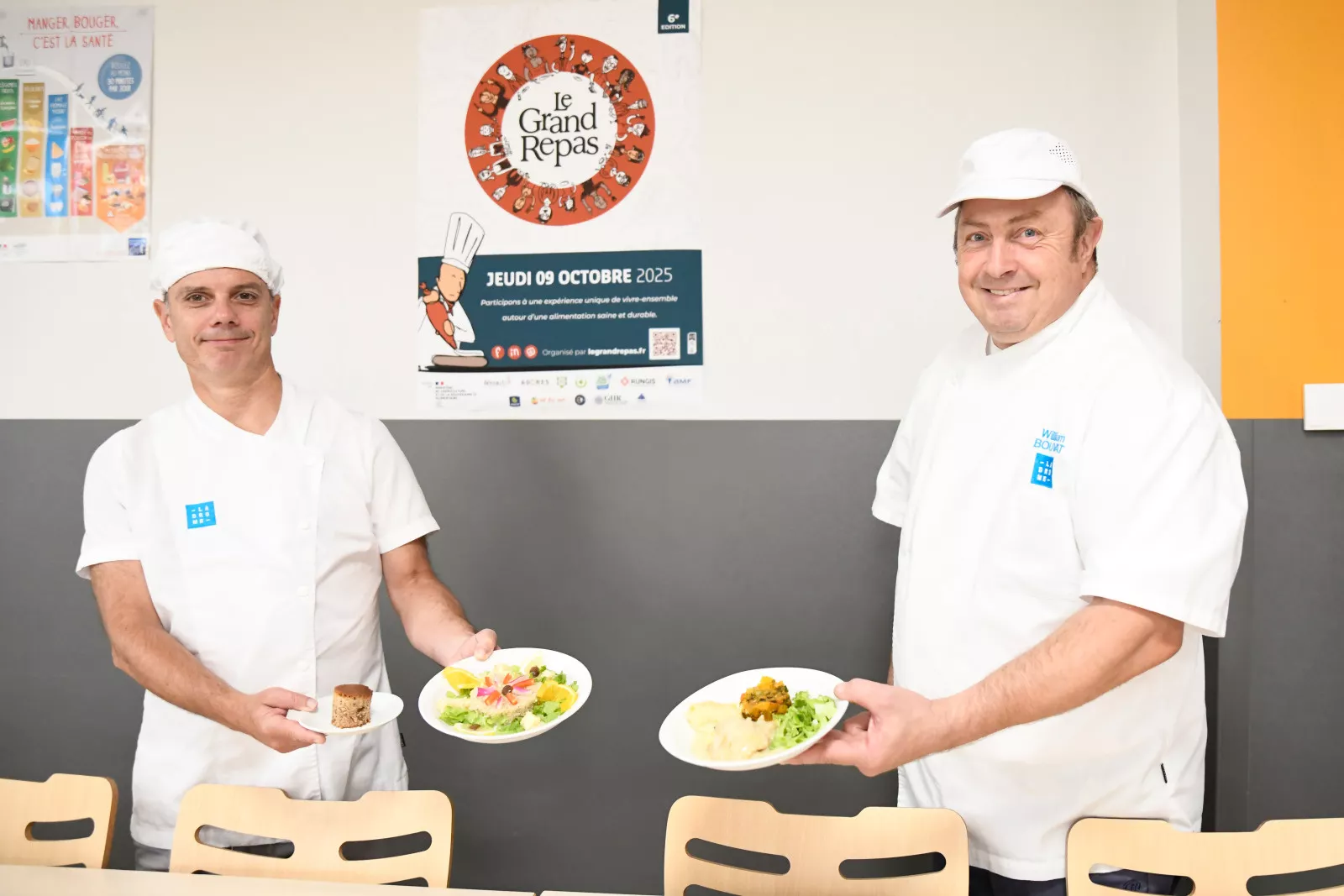 Ce jeudi 9 octobre, les élèves de 11 collèges du département ont eu la chance de déguster un menu concocté par les chefs Maxime Szczepaniak et Sébastien Lavaud, à l’occasion de la 6ème édition du Grand Repas.